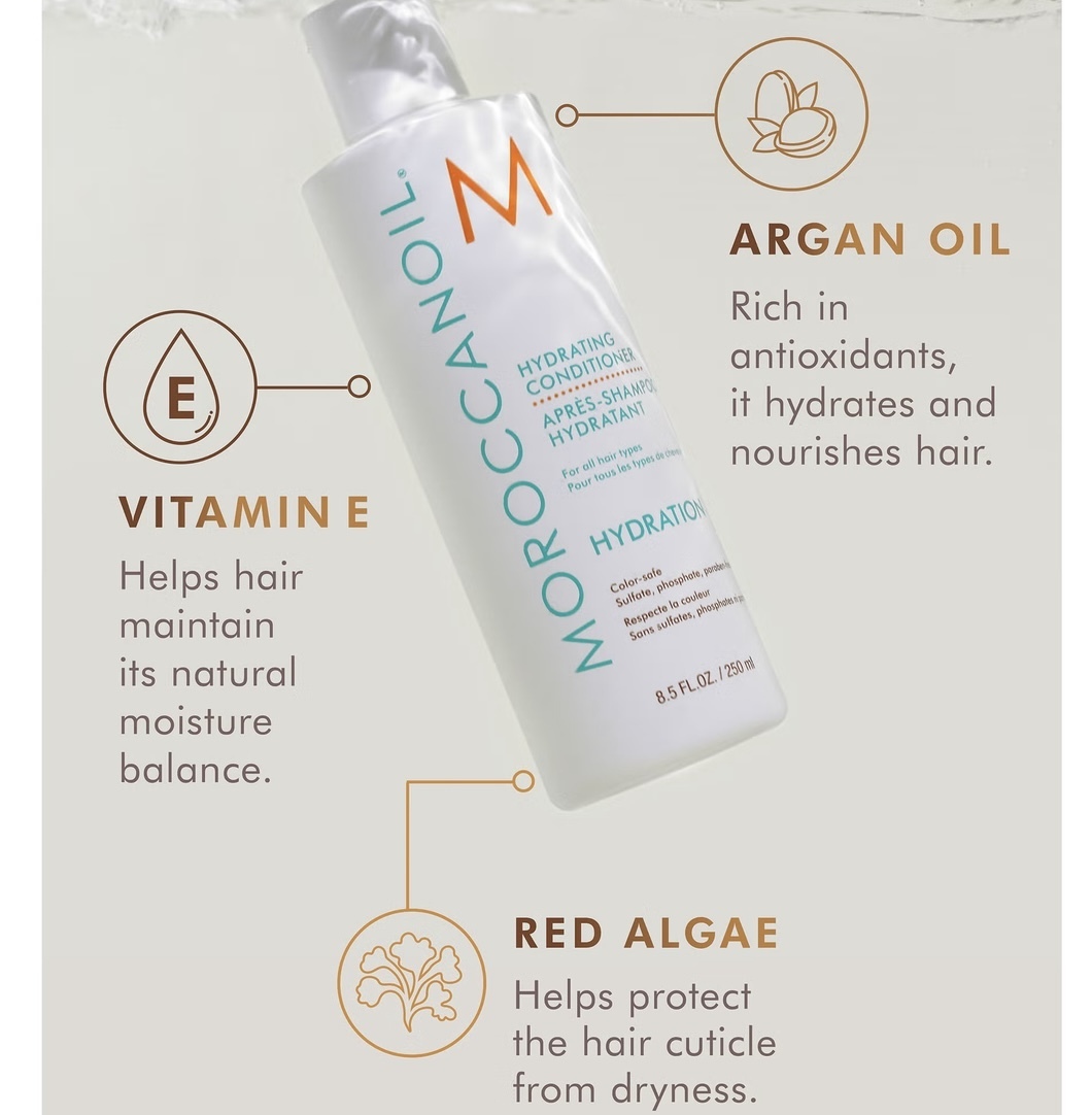 Rich formula contains argan oil, red algae and vitamin E, the moroccan hydrating duo revitalises the look and feel of dry hair. Infuses strands with intense hydration, working to enhance the appearance of shine. Colour-safe, Sulphate-free, paraben-free. Popular full size duo, great for daily moisture and manageability.