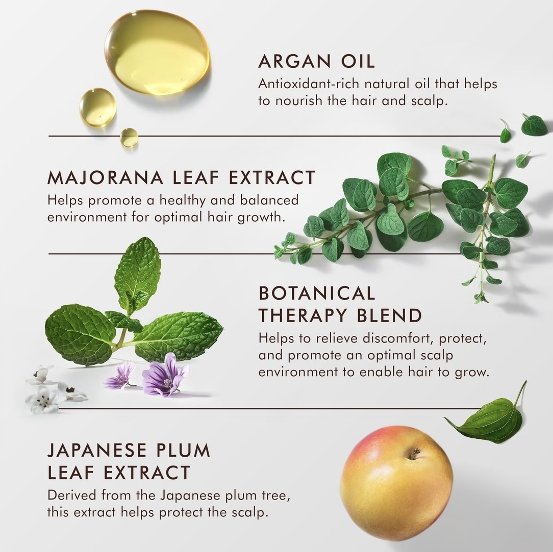 Revitalising scalp tonic promotes the appearance of fuller, thicker hair with a stronger feel. Weightless and fast absorbing, the leave-in-treatment nourishes the scalp to promote optimal conditions for future hair growth. Infused with a blend of sweet marjoram and Japanese plum, the scalp treatment helps to increase the look of volume and density, while the soothing botanical blend minimises hair fall. This is a non-rinse treatment which can be left to work on the scalp without feeling greasy or oily.