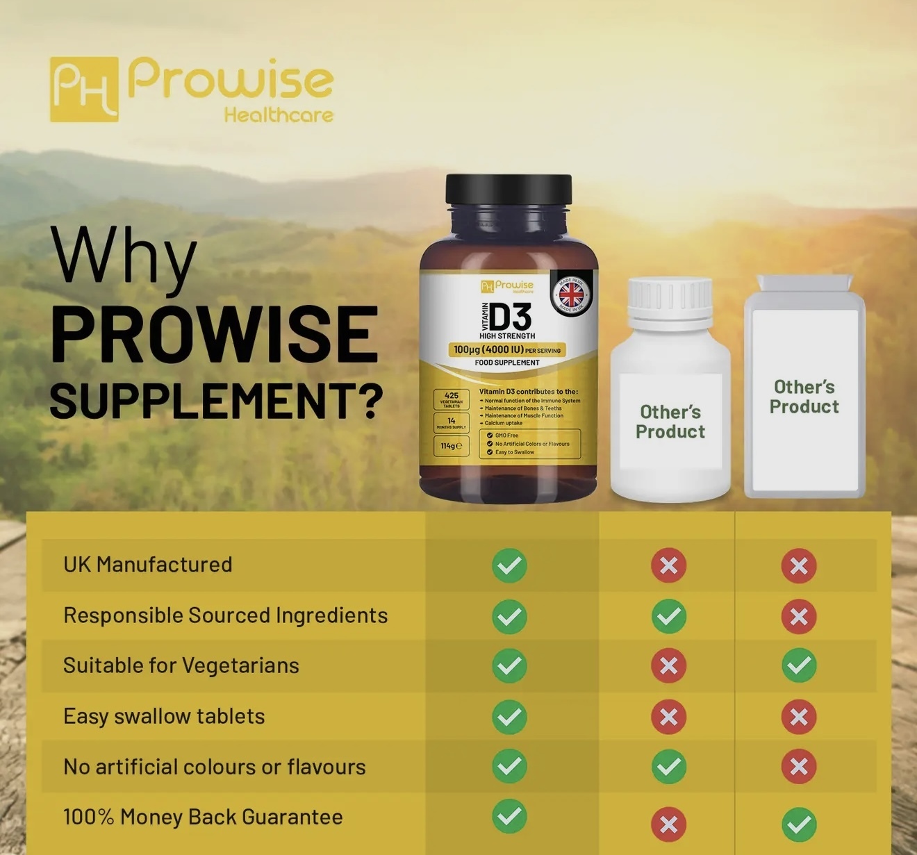 The sunshine vitamin will supercharge your bones and joint health. The high strength, gluten free and vegan friendly bottle of 425 tablets provides a 14 month supply of the essential nutient.