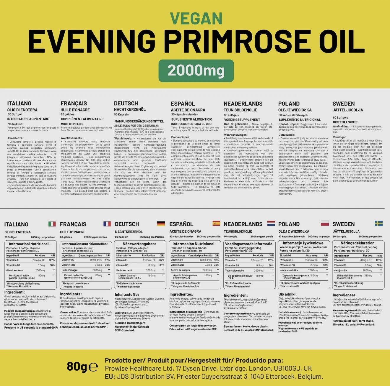 Powise Evening Primrose Oil 2000mg 60 Sofgels