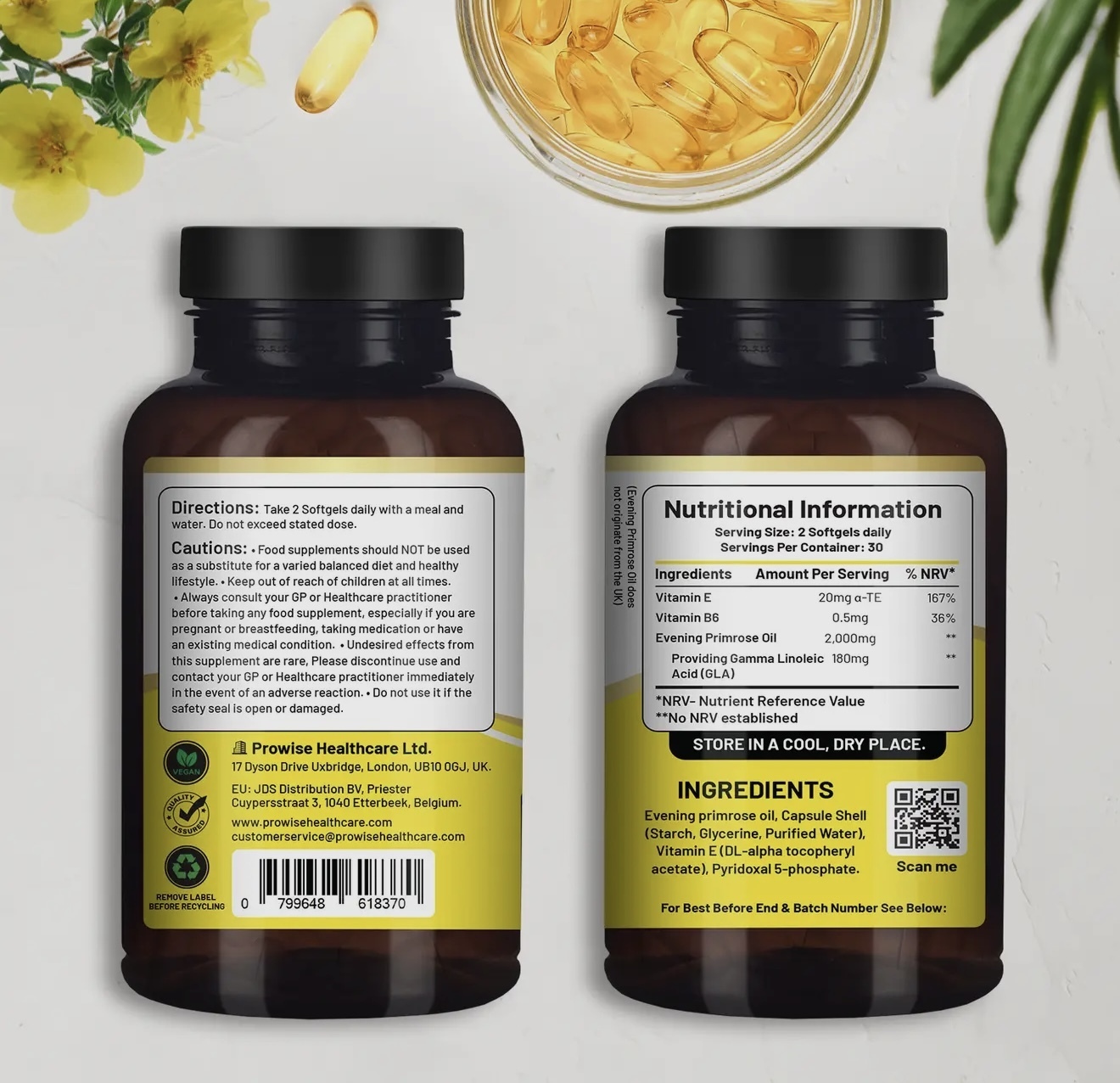 The evening primrose softgel supplements are a natural source of nourishment that reaches to improve health. Enjoy the soothing experience of smooth moving joints and flexibility. Also maintain hormonal balance.The supplements are made with natural ingredients and is free from artificial colours or flavours, free from GMO's.