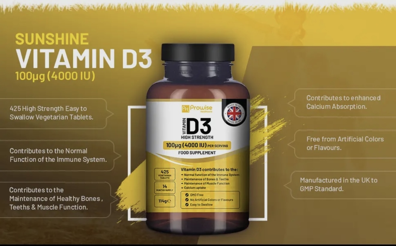 The sunshine vitamin will supercharge your bones and joint health. The high strength, gluten free and vegan friendly bottle of 425 tablets provides a 14 month supply of the essential nutient.