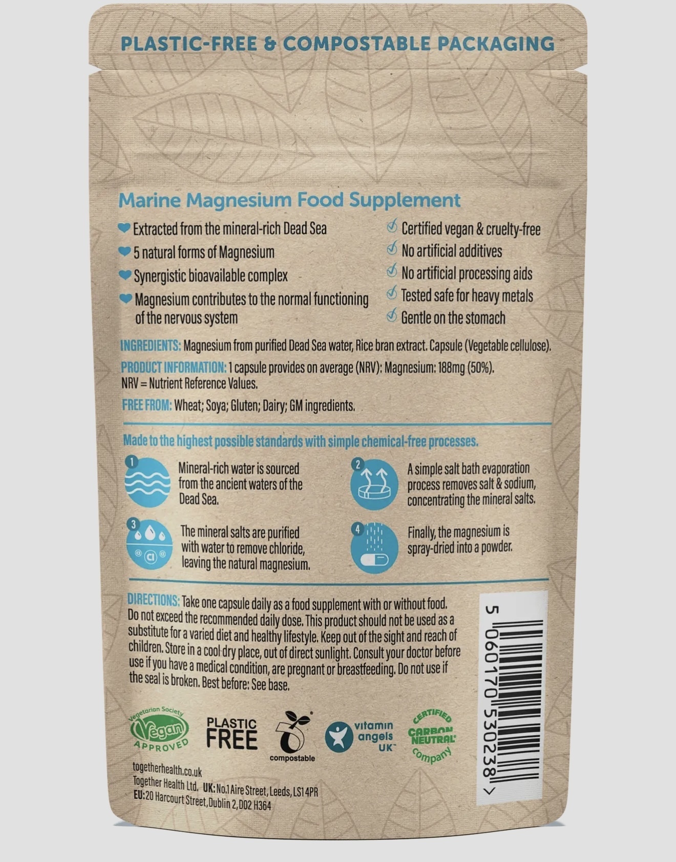 This bioavailable magnesium supplement has 5 forms of bioavailable magnesium, naturally evaporated and purified, effective yet gentle on the stomach, free from additives and processing chemicals, non GMO.