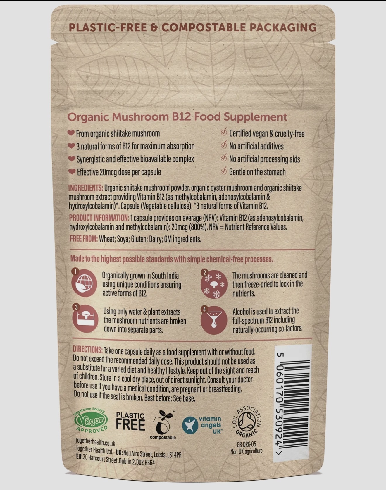 This essential supplement is made from organic shiitake & oyster mushrooms, with 3 natural forms of vitamin B12, it's sourced from wholefoods so is more easily digested and absorbed by the body. Plus it benefits from many cofactors such as polysaccharides, folate, selenium and iodine.